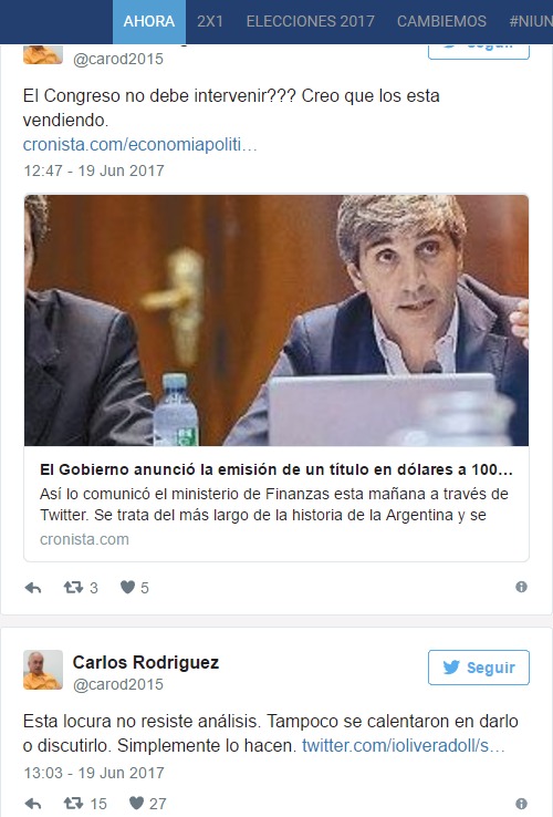 Otro economista que atacó con dureza la medida de Cambiemos fue Carlos Rodríguez: «El Congreso no debe intervenir??? Creo que los esta vendiendo».