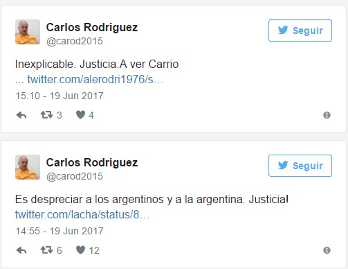 No conforme, Rodríguez, un economista habitualmente cercano al modelo propuesto por el macrismo, pidió la intervención de la justicia y de la diputada Elisa Carrió, consideró que «seguro es todo legalmente inmoral» y disparó que «es despreciar a los argentinos y a la Argentina».