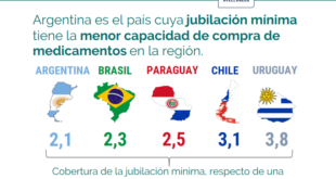 Más »Argentina es el país cuya jubilación mínima tiene la menor capacidad de compra de medicamentos de la región