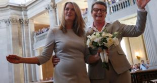 Kristin Perry y Sandra Stier se casaron ayer después de 14 años de relación, en una emotiva ceremonia oficiada por la fiscal general de California, Kamala Harris, dos días después de que la Corte Suprema …
