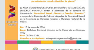En la provincia de Salta, en el marco del ciclo “Soy en tu Mirada”, se realizarán distintas actividades durante el mes de mayo. En el marco del día internacional de la lucha contra la discriminación …