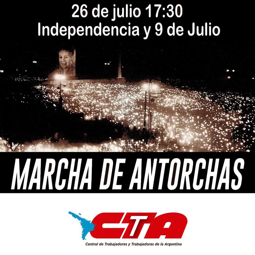 Por eso, desde la CTA, en el camino a la gran movilización del 17 de agosto de todas las centrales sindicales, convocamos a una Marcha de Antorchas este 26 de julio, reivindicando a la compañera Evita, quien nunca dudó en enfrentarse a los poderosos para defender los derechos de los humildes.