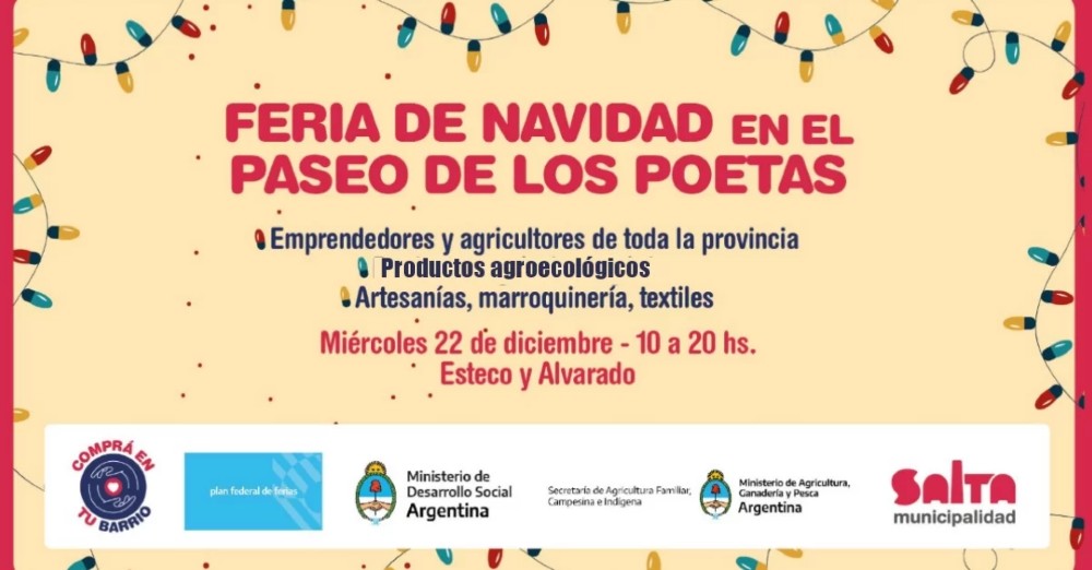 El próximo miércoles 22 de diciembre, de 10 a 20 horas, se desarrollará la última feria de emprendedorxs en el Paseo de los Poetas en calle Esteco y Alvarado.