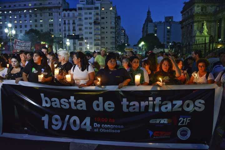 Camioneros, Suteba, ATE, CTA de los Trabajadores, CTA Autónomas, Mulsitectoriales, movimientos sociales y decenas de organizaciones más marchan por las calles porteñas con sus banderas y carteles contra el tarifazo. La consigna era solo llevar una vela blanca como símbolo del nuevo aumento de gas y luz que golpea a los bolsillos de los trabajadores.