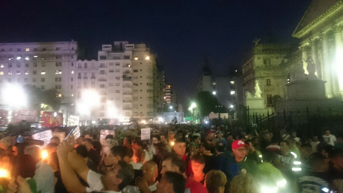 La denominada «Marcha de las Velas», convocada por sindicatos y organizaciones sociales, avanzaba este jueves desde la Plaza del Congreso hacia el Obelisco. Miles de militantes y ciudadanos se agolparon en la Plaza de los Dos Congresos para exigir un alto a la suba de los servicios públicos.