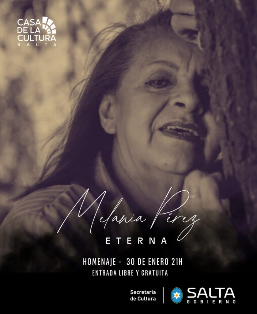 El próximo viernes 30 de enero, a las 21 horas, la Casa de la Cultura (sala Juan Carlos Dávalos, Caseros 460) será el escenario de «Melania Eterna», un emotivo concierto homenaje a la cantora Melania Pérez. El evento, organizado por artistas, músicos, familiares y amigos en conjunto con la Secretaría de Cultura, tendrá entrada libre y gratuita.