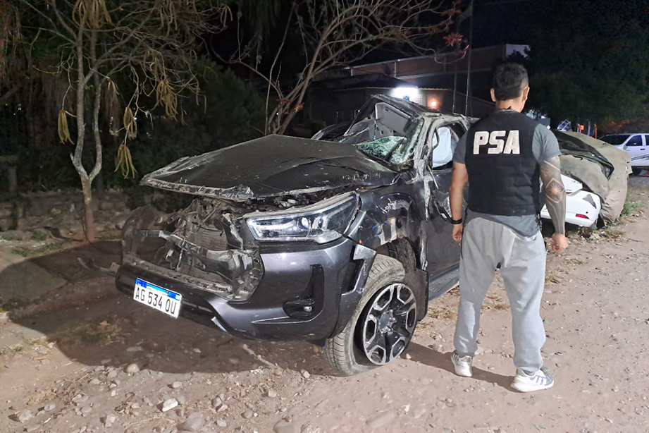 La camioneta Toyota Hilux volcada que era conducida por el prófugo. Foto: Policía de Seguridad Aeroportuaria