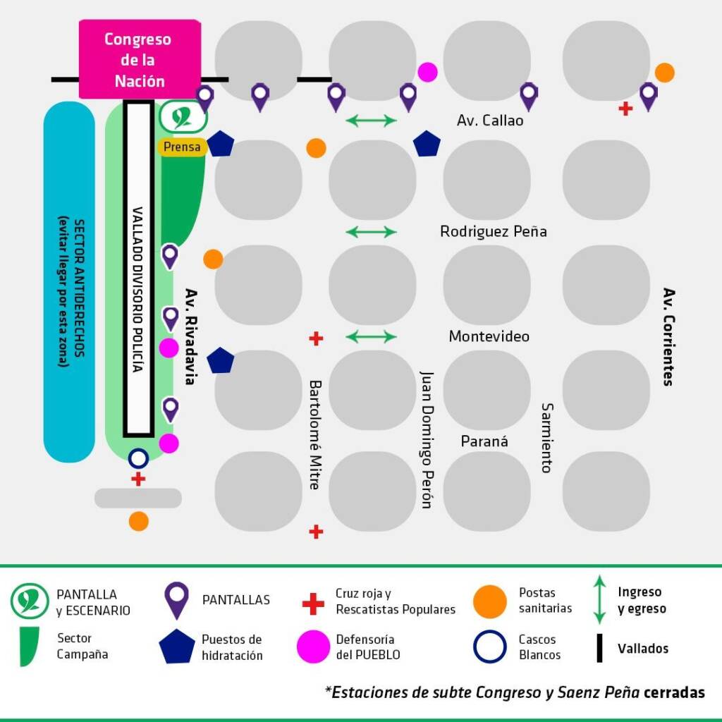 La convocatoria frente al Congreso Nacional será el jueves 10 desde las 10 horas. Se espera una jornada extensa, ya que serán aproximadamente 30 horas de debate que acompañaremos con actividades y talleres. Habrá un escenario central y pantallas sobre las calles Rivadavia y Callao para que, quienes se acerquen, puedan seguir las intervenciones de las y los diputados. Se invita a llevar sus reposeras y habrá puestos de hidratación, reparto de tapabocas y alcohol y de Cruz Roja y rescatistas populares.